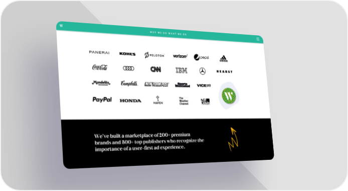 WHY WE DO WHAT WE DO We’ve built a marketplace of 200+ premium brands and 300+ toppublishers who recognize the importance of a user-first ad experience.